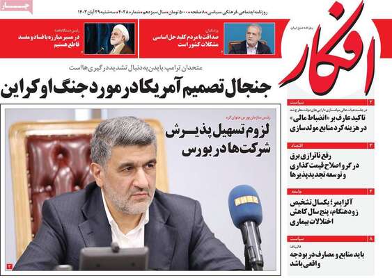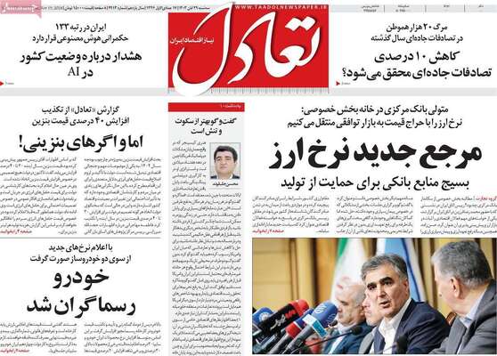 صفحه نخست روزنامههای یکشنبه ۱۸ آبان ۱۴۰۴