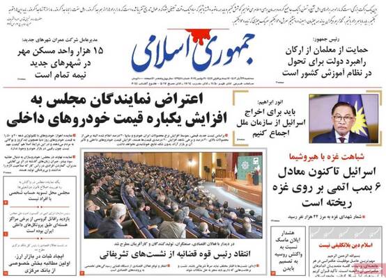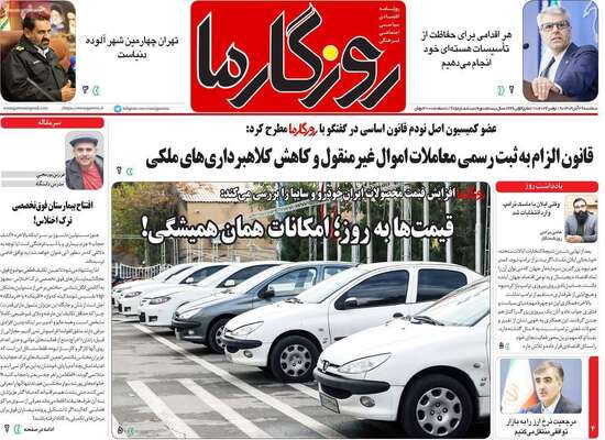 صفحه نخست روزنامههای سهشنبه ۲۹ آبان ۱۴۰۳ را که به وفاق قوا برای رفع فیلترینگ، گرانی خودروهای معمولی، شکستهای پی در پی صهیونیست از حزبالله و مهمترین رویدادهای ورزشی پرداختهاند؛ در ادامه مشاهده میکنید.