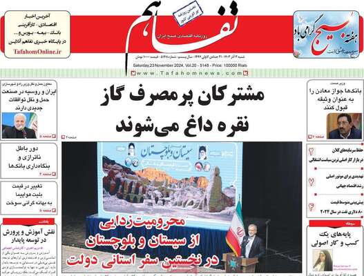 صفحه نخست روزنامههای شنبه ۳ آذر ۱۴۰۳ را که به جنایتکاران تحت تعقیب رژیم صهیونیستی، سیستان و بلوچستان در مدار تکریم و مهمترین رویدادهای ورزشی پرداختهاند؛ در ادامه مشاهده میکنید.