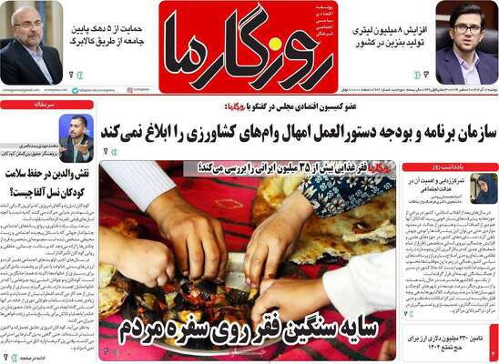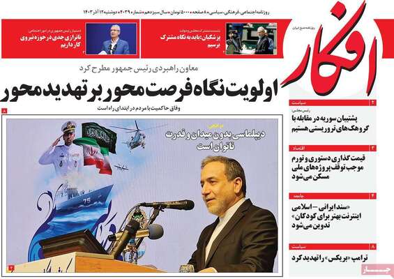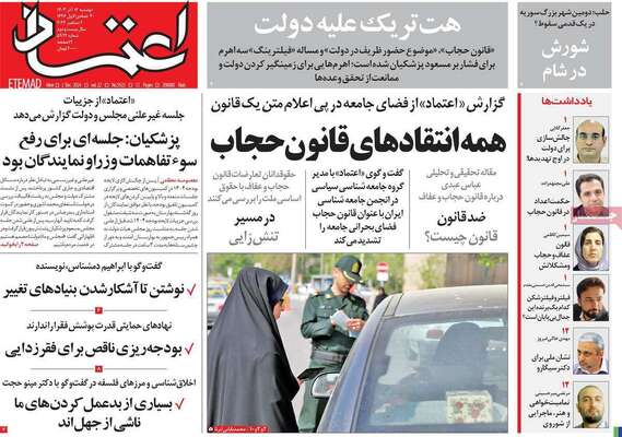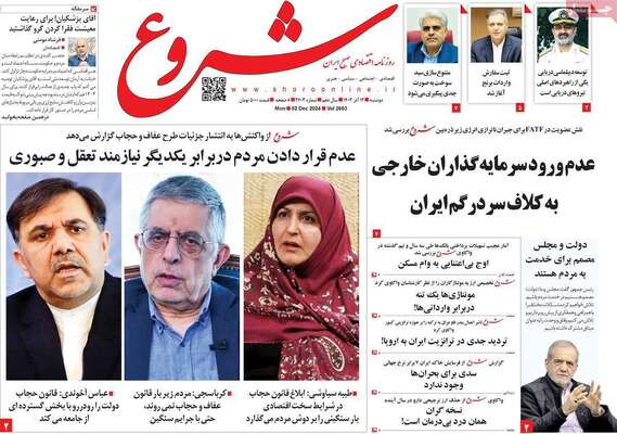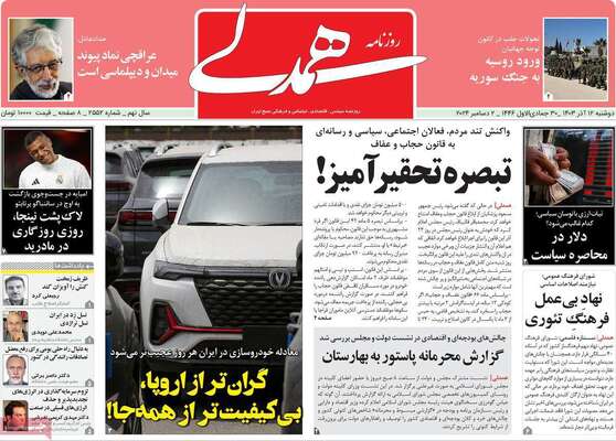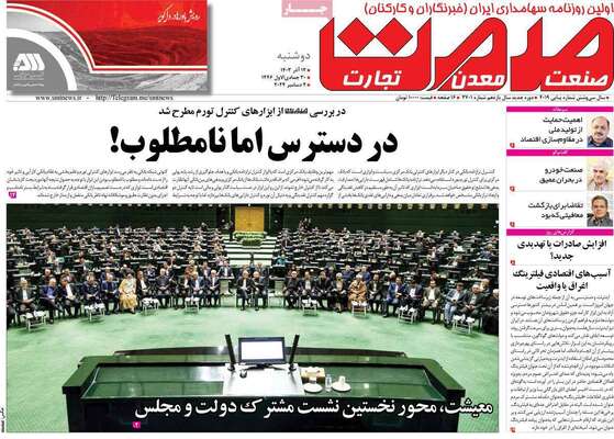 صفحه نخست روزنامههای دوشنبه ۱۲ آذر ۱۴۰۳
