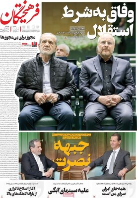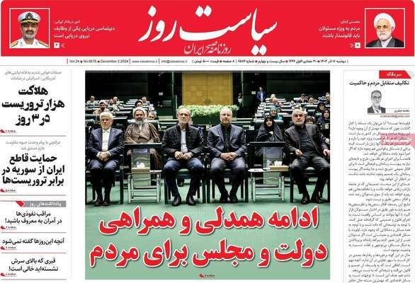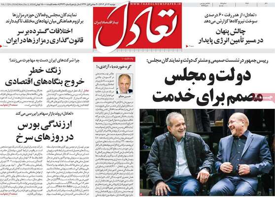صفحه نخست روزنامههای دوشنبه ۱۲ آذر ۱۴۰۳ را که به وفاق دولت و ملت برای معیشت مردم، حضور وزیر امور خارجه در دمشق و مهمترین رویدادهای ورزشی پرداختهاند؛ در ادامه مشاهده میکنید.
