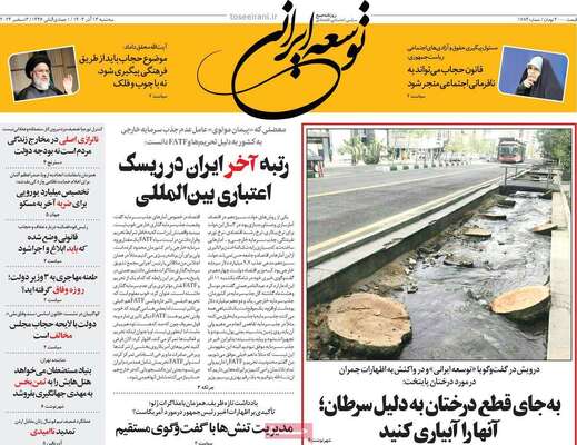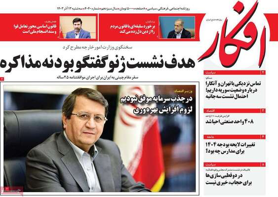 صفحه نخست روزنامههای سهشنبه ۱۳ آذر ۱۴۰۳