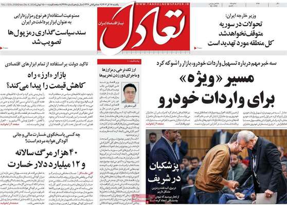 صفحه نخست روزنامههای یکشنبه ۱۸ آذر ۱۴۰۳