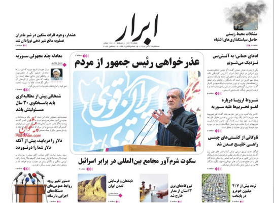صفحه نخست روزنامههای سهشنبه ۲۷ آذر ۱۴۰۳ را که به پویش دو درجه کمتر، روایت سقوط، نسخه نجاتبخش پزشکیان و مهمترین رویدادهای ورزشی پرداختهاند؛ در ادامه مشاهده میکنید.