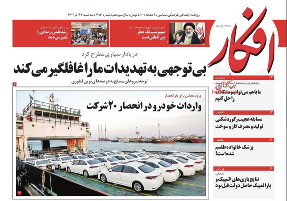 صفحه نخست روزنامههای سهشنبه ۲۷ آذر ۱۴۰۳