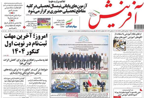صفحه نخست روزنامههای سهشنبه ۶ آبان ۱۴۰۴