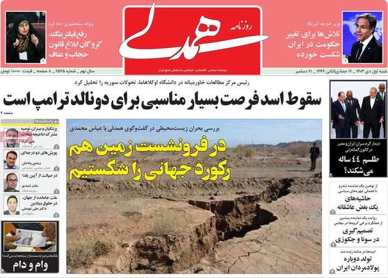 صفحه نخست روزنامههای شنبه ۱ دی ۱۴۰۳