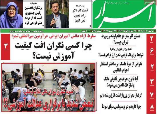 صفحه نخست روزنامههای سهشنبه ۶ آبان ۱۴۰۴