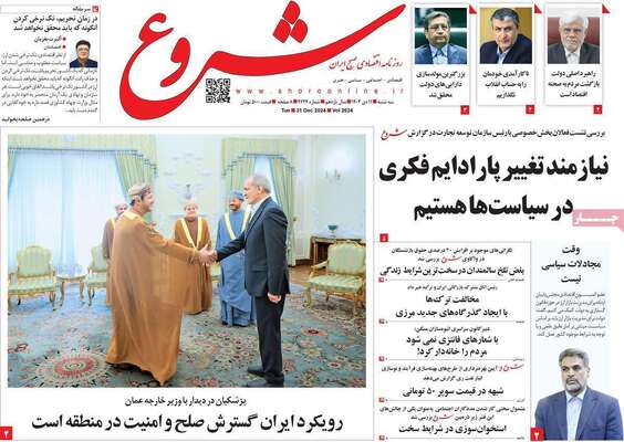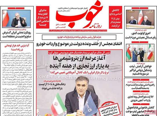 صفحه نخست روزنامههای سهشنبه ۱۱ دی ۱۴۰۳ را که به سیگنالهای مذاکره، آینده آب در ایران، وابستگی جولانی به اسرائیل و مهمترین رویدادهای ورزشی پرداختهاند؛ در ادامه مشاهده میکنید.