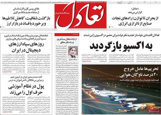 صفحه نخست روزنامههای یکشنبه ۱۸ آبان ۱۴۰۴
