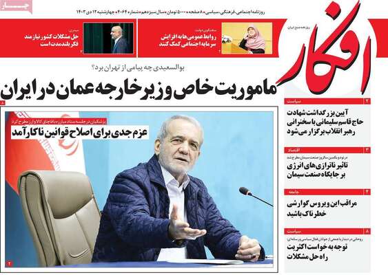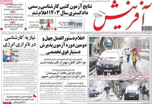 صفحه نخست روزنامههای چهارشنبه ۱۲ دی ۱۴۰۳