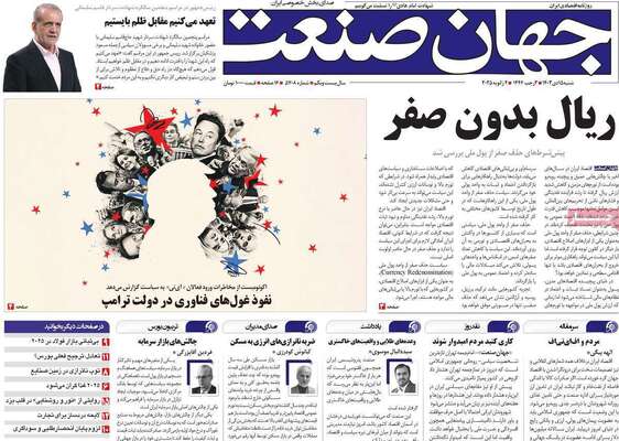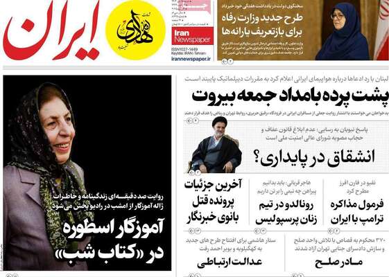 صفحه نخست روزنامههای یکشنبه ۱۸ آبان ۱۴۰۴