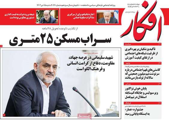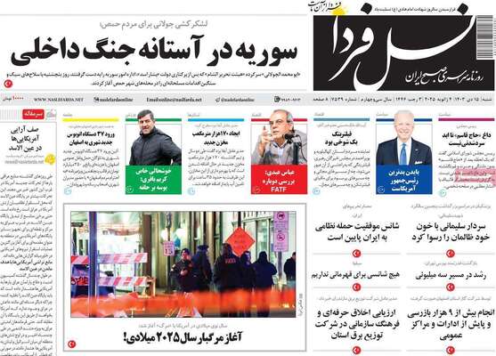 صفحه نخست روزنامههای شنبه ۱۵ دی ۱۴۰۳