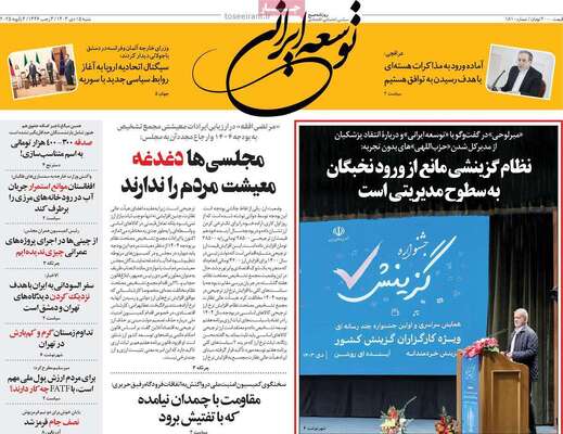 صفحه نخست روزنامههای سهشنبه ۲۰ آبان ۱۴۰۴