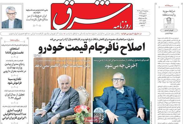 صفحه نخست روزنامههای یکشنبه ۱۸ آبان ۱۴۰۴