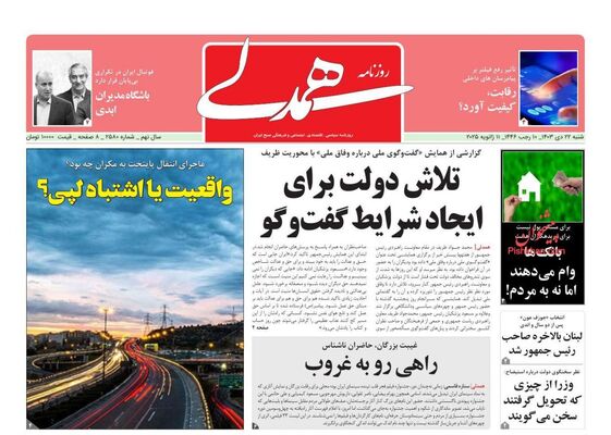 صفحه نخست روزنامههای دوشنبه ۱۲ آبان ۱۴۰۴