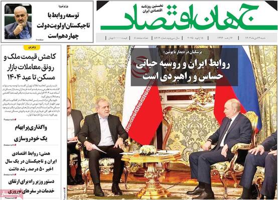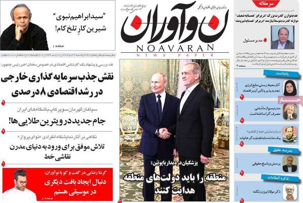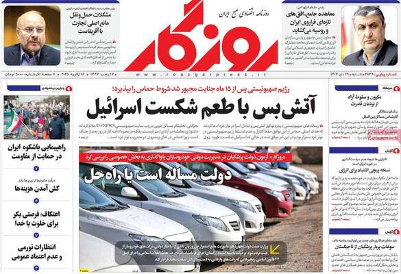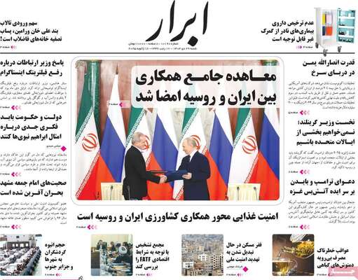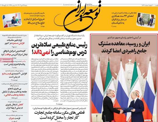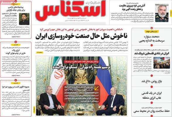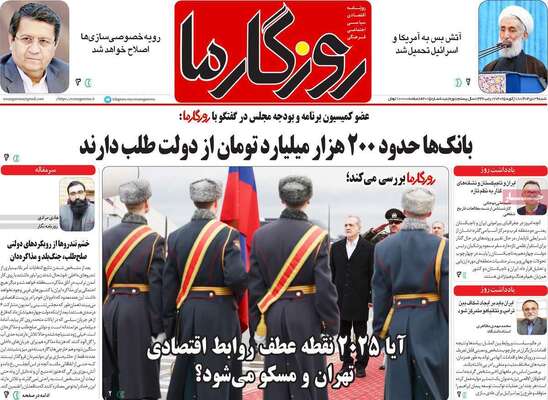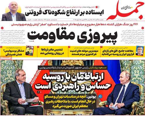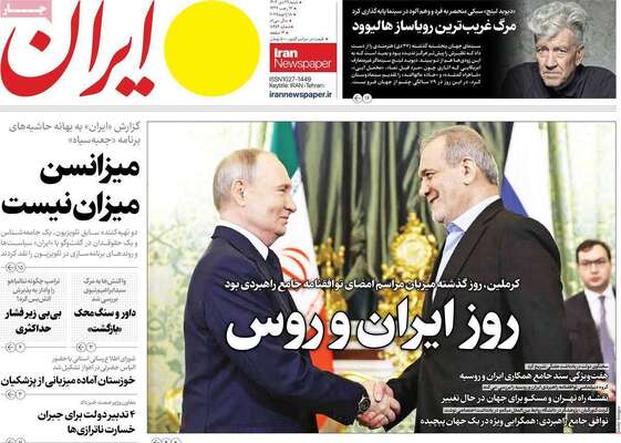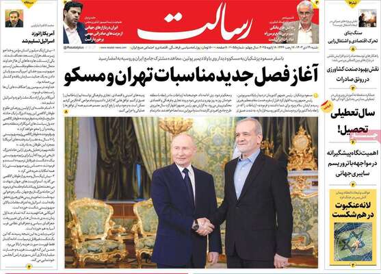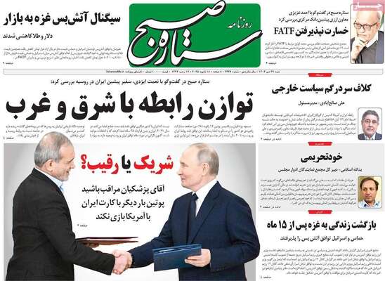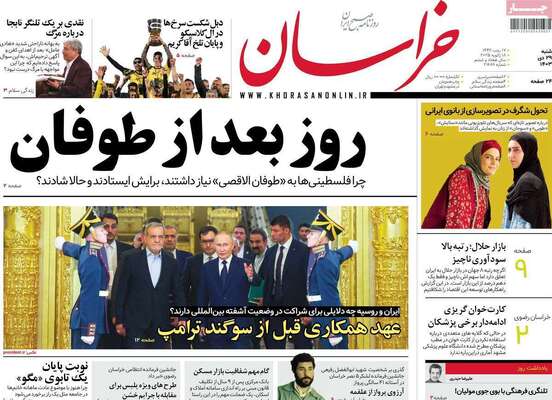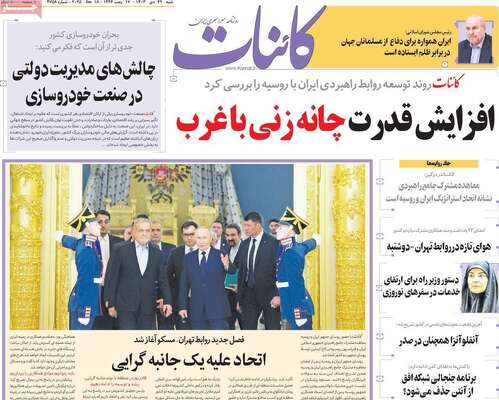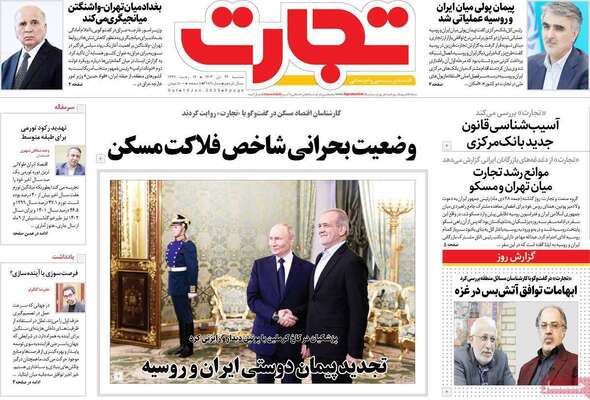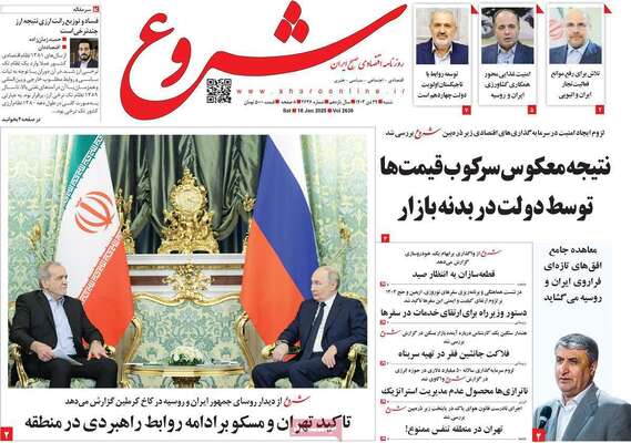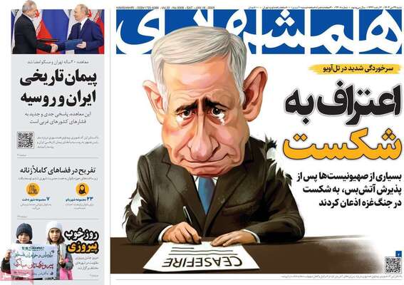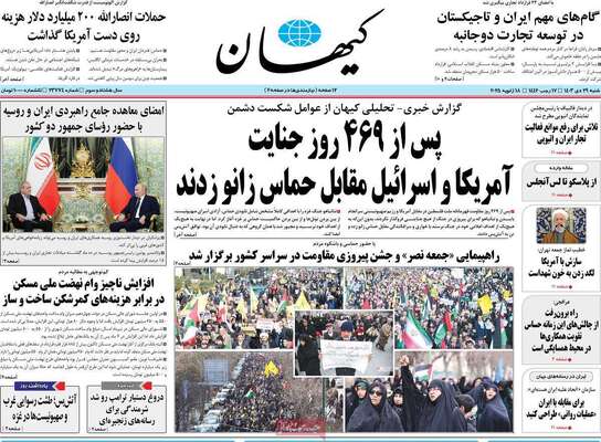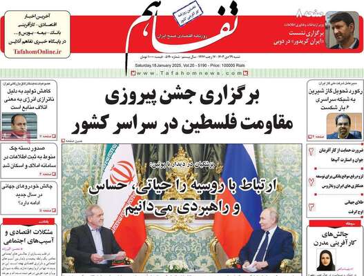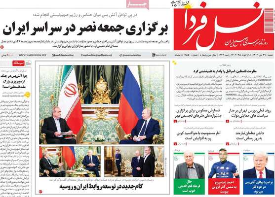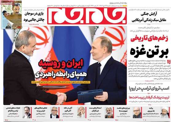 صفحه نخست روزنامههای شنبه ۲۹ دی ۱۴۰۳ را که به استقبال جهانی از آتشبس غزه، آغاز فصل جدید مناسبات تهران و مسکو، مقاومت رمز پیروزی و مهمترین رویدادهای ورزشی پرداختهاند؛ در ادامه مشاهده میکنید.