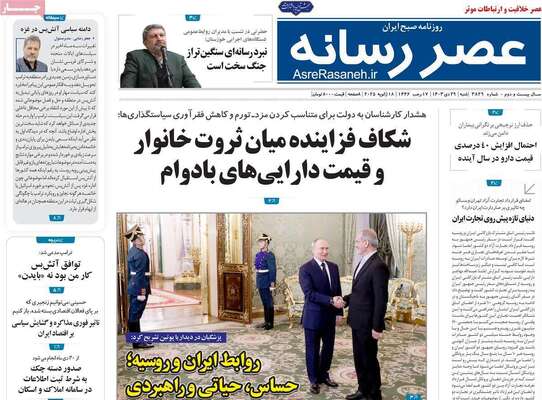 صفحه نخست روزنامههای یکشنبه ۱۸ آبان ۱۴۰۴