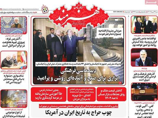صفحه نخست روزنامههای دوشنبه ۱۹ آبان ۱۴۰۴