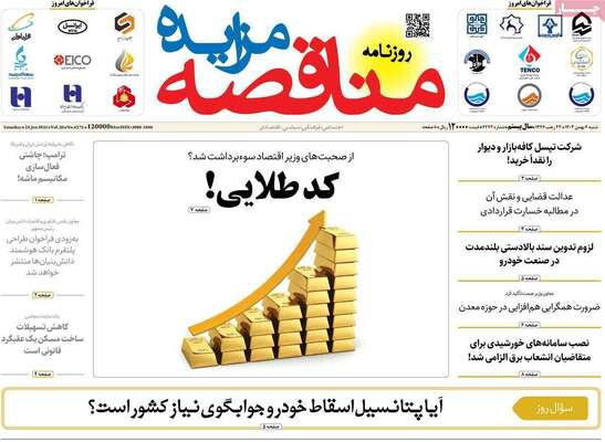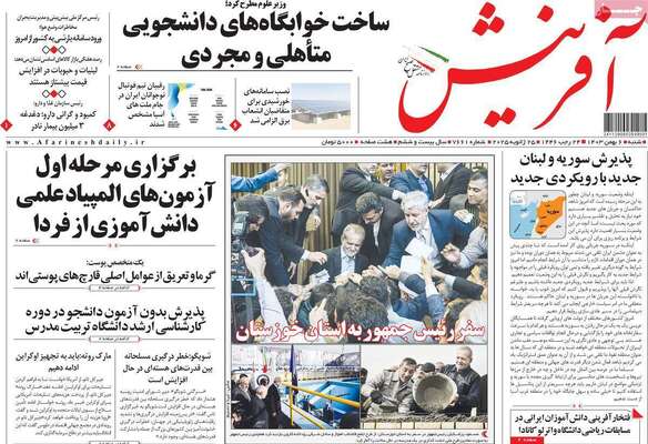 صفحه اول جراید کشور