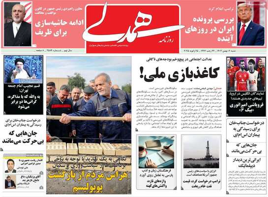 صفحه نخست روزنامههای یکشنبه ۱۸ آبان ۱۴۰۴