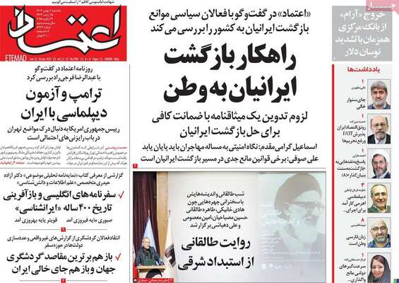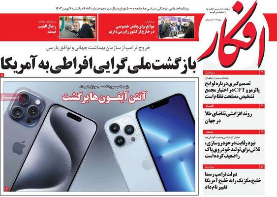 صفحه نخست روزنامههای یکشنبه ۷ بهمن ۱۴۰۳ را که به طوفان رسانهای حماس، راهکار بازگشت ایرانیان به وطن، سیاست مبهم ترامپ و مهمترین رویدادهای ورزشی پرداختهاند؛ در ادامه مشاهده میکنید.