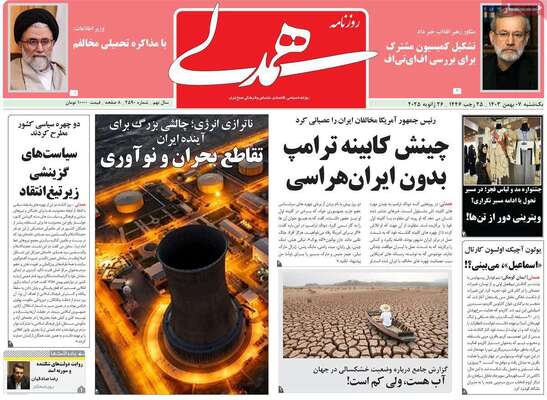 صفحه نخست روزنامههای یکشنبه ۱۸ آبان ۱۴۰۴