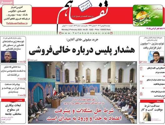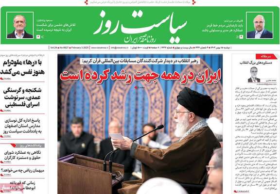 صفحه نخست روزنامههای دوشنبه ۱۵ بهمن ۱۴۰۳ را که به نقشه راه قرآنی فتح، دو شرط حل مشکلات کشور، نقطهزنی پشت دوربین و مهمترین رویدادهای ورزشی پرداختهاند؛ در ادامه مشاهده میکنید.