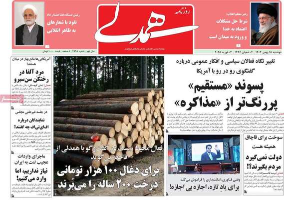صفحه نخست روزنامههای دوشنبه ۱۵ بهمن ۱۴۰۳