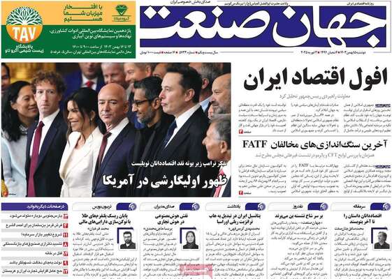صفحه نخست روزنامههای یکشنبه ۱۸ آبان ۱۴۰۴