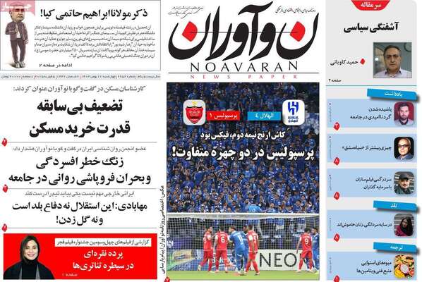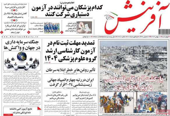 صفحه نخست روزنامههای سهشنبه ۲۰ آبان ۱۴۰۴