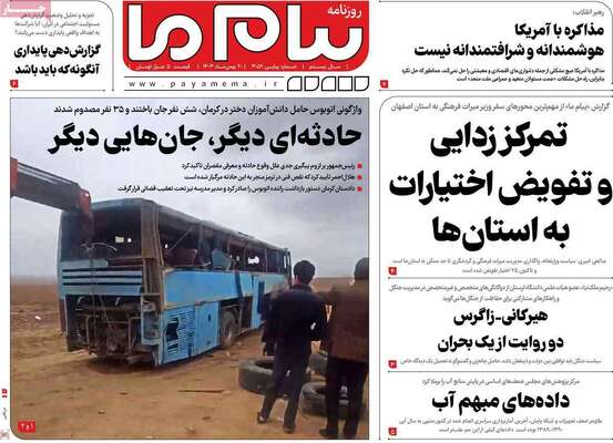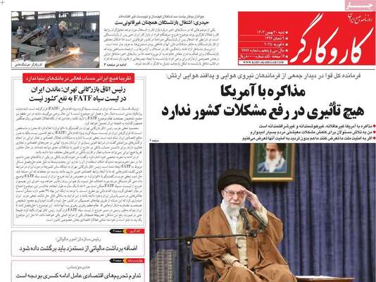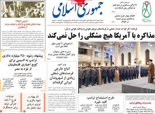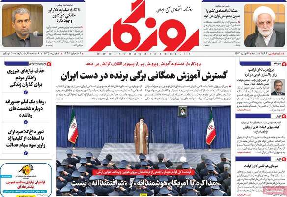صفحه نخست روزنامههای شنبه ۲۰ بهمن ۱۴۰۳ را که به پاسخ صریح و قاطع رهبر معظم انقلاب درباره مذاکره با آمریکا، پاسخ پزشکیان به ادعای ترامپ، حادثهای دیگر در جادهها و مهمترین رویدادهای ورزشی پرداختهاند؛ در ادامه مشاهده میکنید.