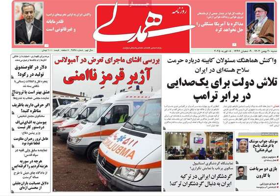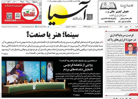 صفحه نخست روزنامههای شنبه ۲۰ بهمن ۱۴۰۳