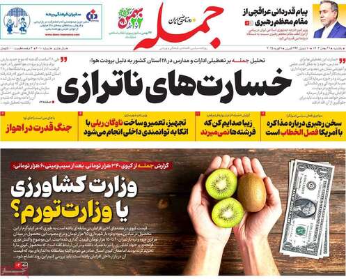 صفحه اول جراید کشور