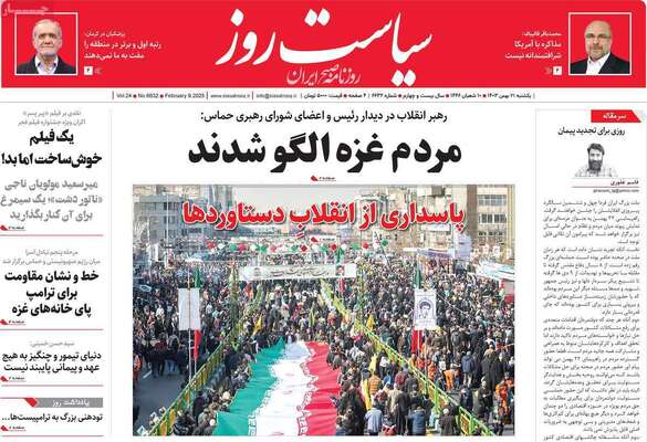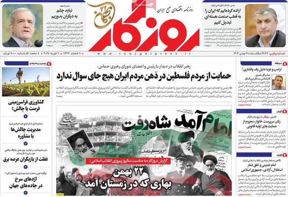 صفحه نخست روزنامههای یکشنبه ۲۱ بهمن ۱۴۰۳ را که به بارش برف در همه جای ایران، الگو شدن مردم غزه، تولد انقلاب و مهمترین رویدادهای ورزشی پرداختهاند؛ در ادامه مشاهده میکنید.