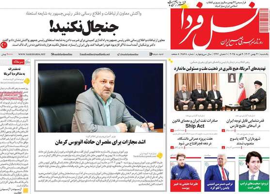 صفحه نخست روزنامههای یکشنبه ۱۸ آبان ۱۴۰۴