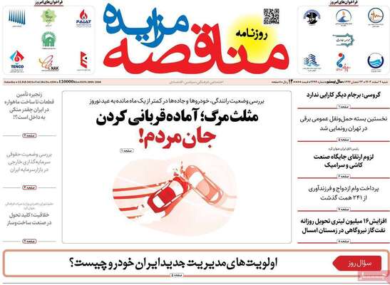 صفحه نخست روزنامههای شنبه ۴ اسفند ۱۴۰۳ را که به هشدار قرمز به تمام استانها، مانور سراسری تمرین زلزله در تهران، بیروت آماده وداع تاریخی و مهمترین رویدادهای ورزشی پرداختهاند؛ در ادامه مشاهده میکنید.