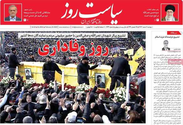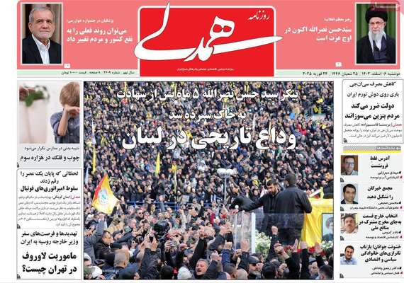 صفحه نخست روزنامههای دوشنبه ۶ اسفند ۱۴۰۳