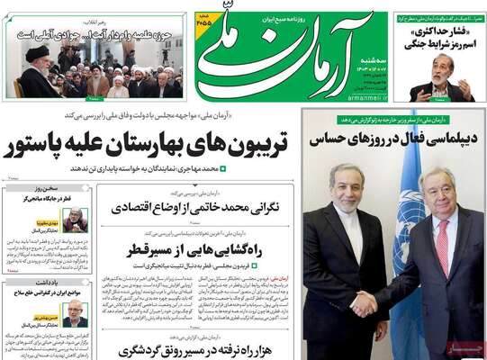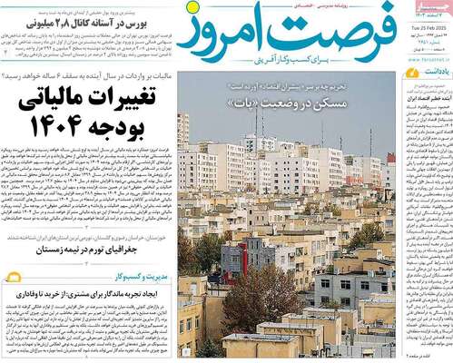 صفحه نخست روزنامههای سهشنبه ۷ اسفند ۱۴۰۳ را که به پای درس تسنیم، اصلاح سیاستهای تورمزا، منهای دود و مهمترین رویدادهای ورزشی پرداختهاند؛ در ادامه مشاهده میکنید.