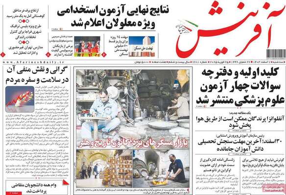 صفحه نخست روزنامههای سهشنبه ۷ اسفند ۱۴۰۳