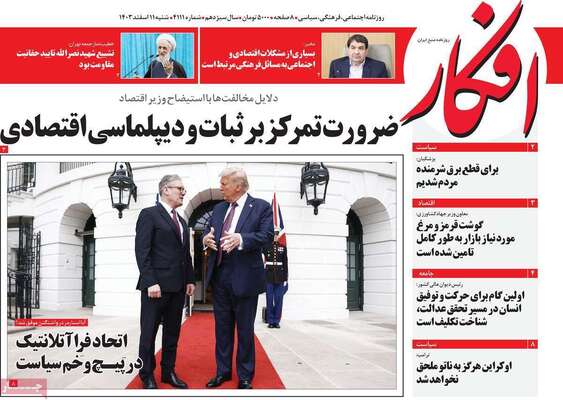 صفحه نخست روزنامههای چهارشنبه ۷ آبان ۱۴۰۴
