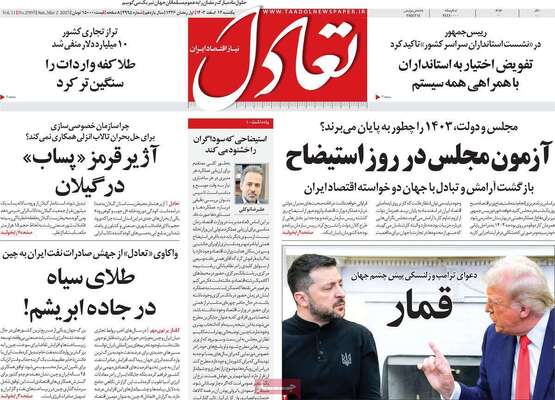 صفحه نخست روزنامههای یکشنبه ۴ آبان ۱۴۰۴