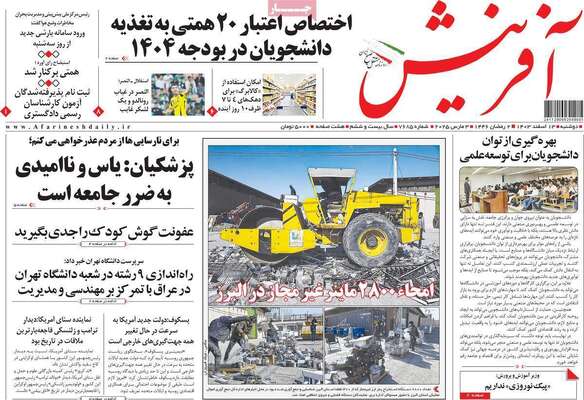 صفحه نخست روزنامههای یکشنبه ۲۳ آذر ۱۴۰۴