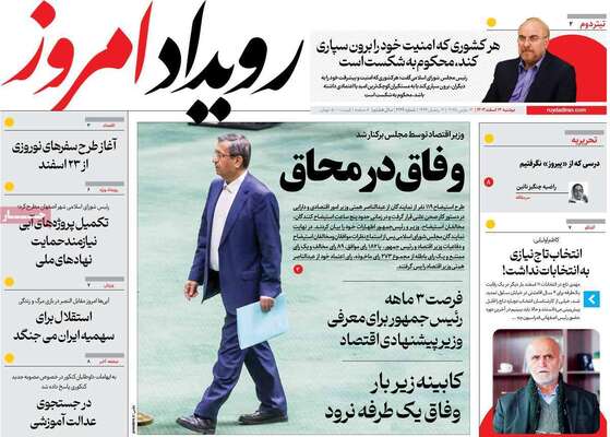 صفحه نخست روزنامههای دوشنبه ۱۳ اسفند ۱۴۰۳ را که به در محضر حکیم، بیدارباش به دولت، فرصت ترمیم و مهمترین رویدادهای ورزشی پرداختهاند؛ در ادامه مشاهده میکنید.
