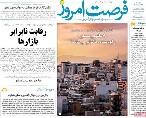 صفحه نخست روزنامههای دوشنبه ۱۳ اسفند ۱۴۰۳