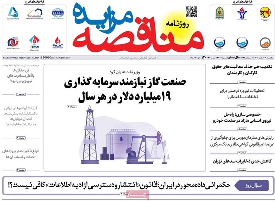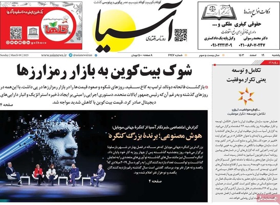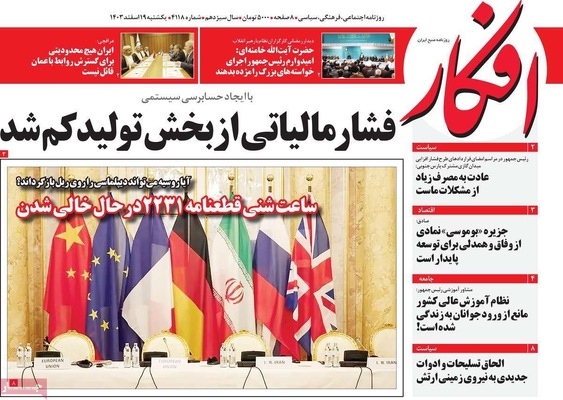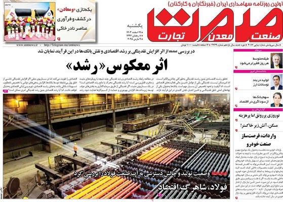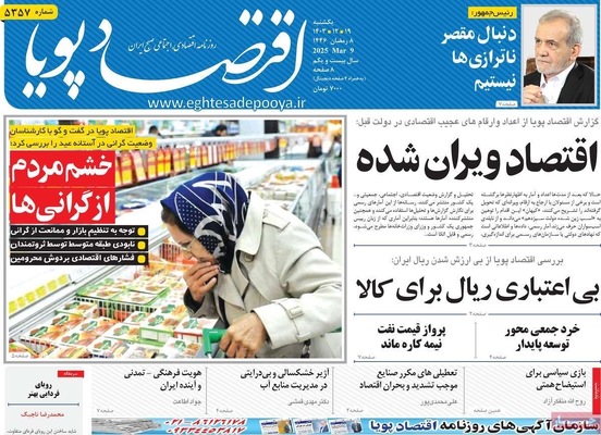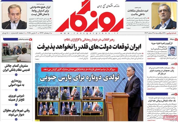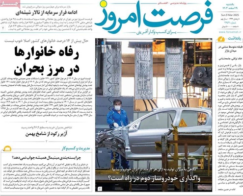 صفحه نخست روزنامههای یکشنبه ۱۹ اسفند ۱۴۰۳