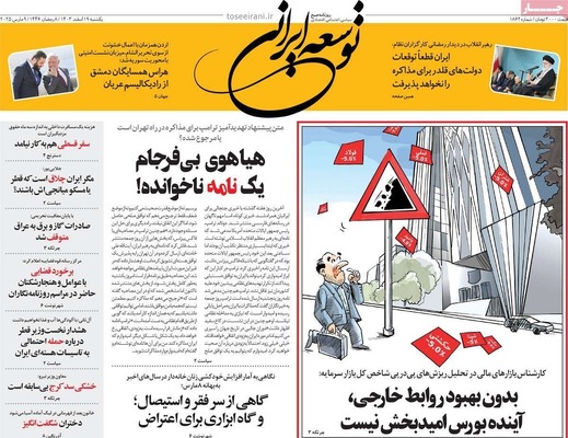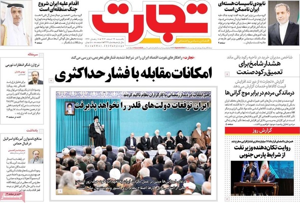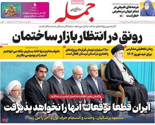 صفحه نخست روزنامههای یکشنبه ۱۹ اسفند ۱۴۰۳ را که به منع مذاکره با قلدرها، جهان در آستانه رویارویی، تعطیلی مُسکن بیتدبیری و مهمترین رویدادهای ورزشی پرداختهاند؛ در ادامه مشاهده میکنید.