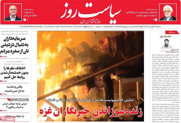 صفحه نخست روزنامههای سهشنبه ۱۹ فروردین ۱۴۰۴