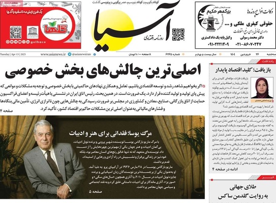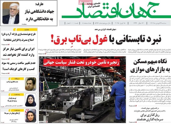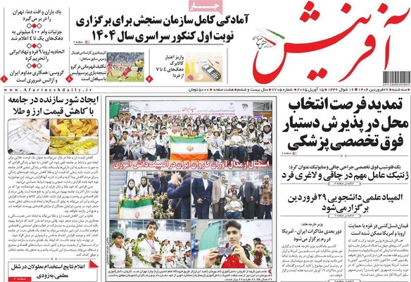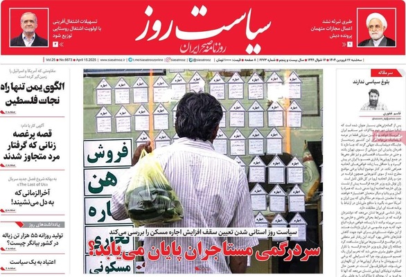 صفحه نخست روزنامههای سهشنبه ۲۶ فروردین ۱۴۰۴