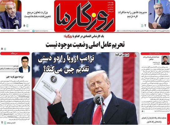 صفحه نخست روزنامههای سهشنبه ۶ آبان ۱۴۰۴